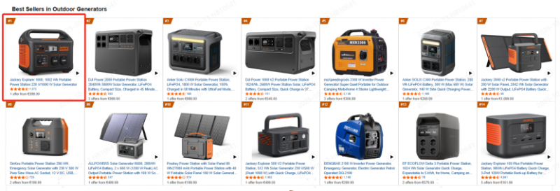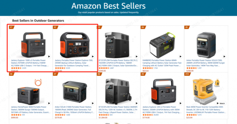 欧洲市场同样表现亮眼,英国亚马逊户外电源品类市占第一,不仅登顶畅销榜,更包揽前三席位;