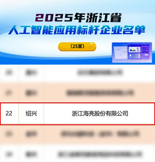 近日,浙江省经信厅公布了2025年浙江省人工智能应用场景、应用标杆企业、人工智能服务商及“数智优品”名单。海亮股份成功入选2025年浙江省人工智能应用标杆企业。