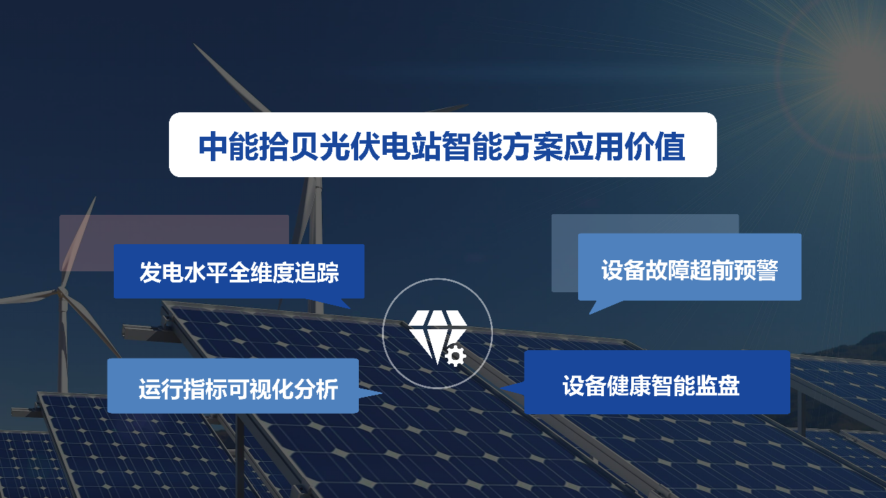 中能拾贝智慧光伏电站建设解决方案,始终紧扣光伏行业高质量发展的核心需求,围绕“设备健康智能监盘、运行指标智能分析、发电水平精准追踪、设备故障超前预警、高危业务无人化检修”五大核心目标,为行业提供“降本、提效、保安全”的清晰路径。