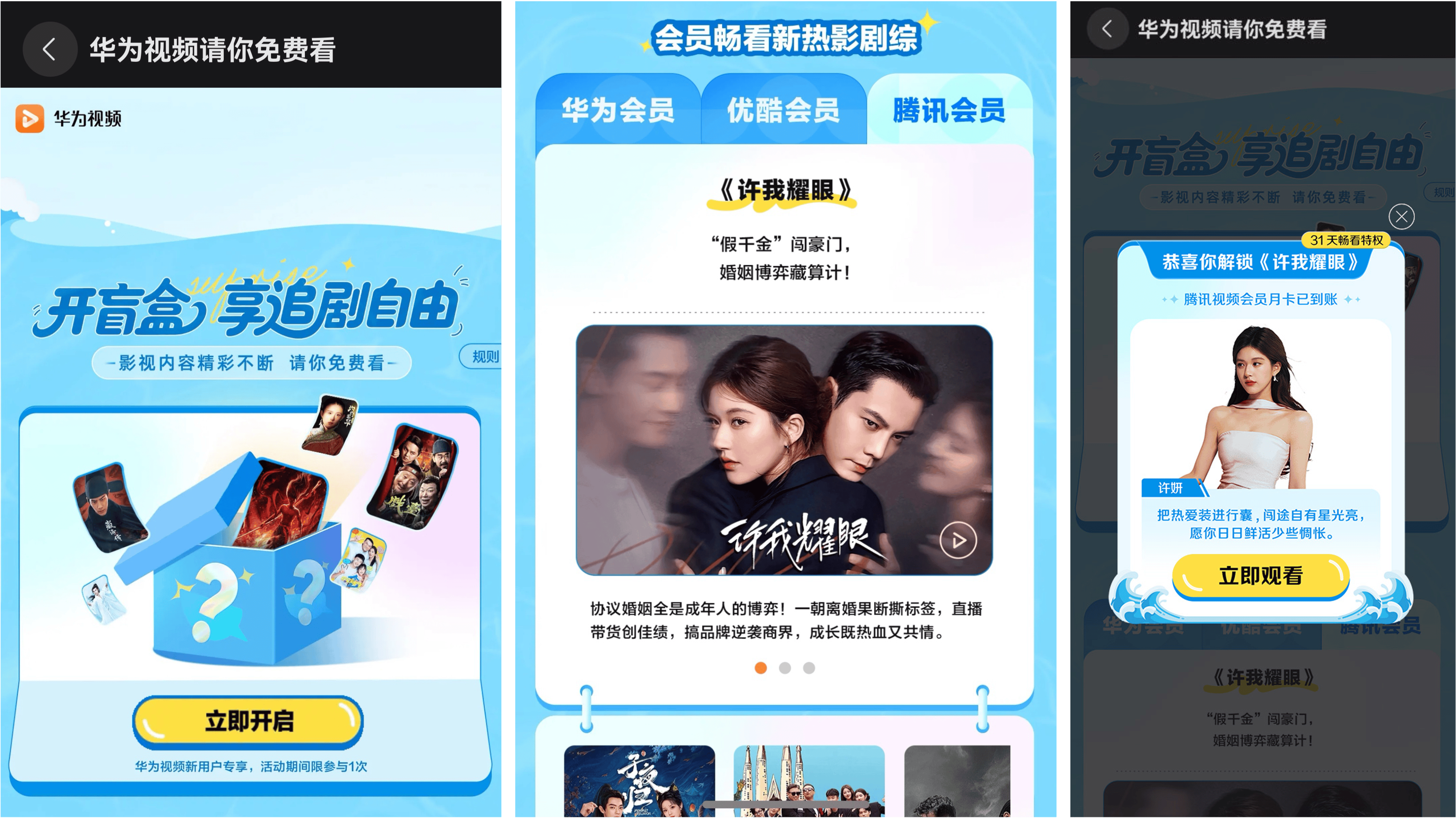 解决了通勤追剧和找片两大难题后,华为视频又给了我一个惊喜。前几天我无意中看到一个活动,华为视频新用户说对手机的小艺助手喊出口令“我要追剧自由”,就能开盲盒领会员。