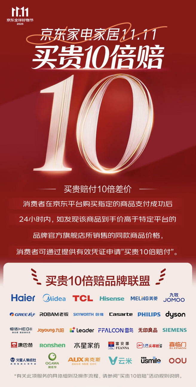 空调、电视、床垫怕买“亏” 京东11.11推出家电家居“买贵10倍赔”