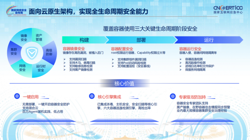在构建阶段,通过基础镜像收敛镜像安全风险,实现安全左移,通过镜像扫描能力,持续进行镜像安全扫描和漏洞管理,修复镜像安全风险;