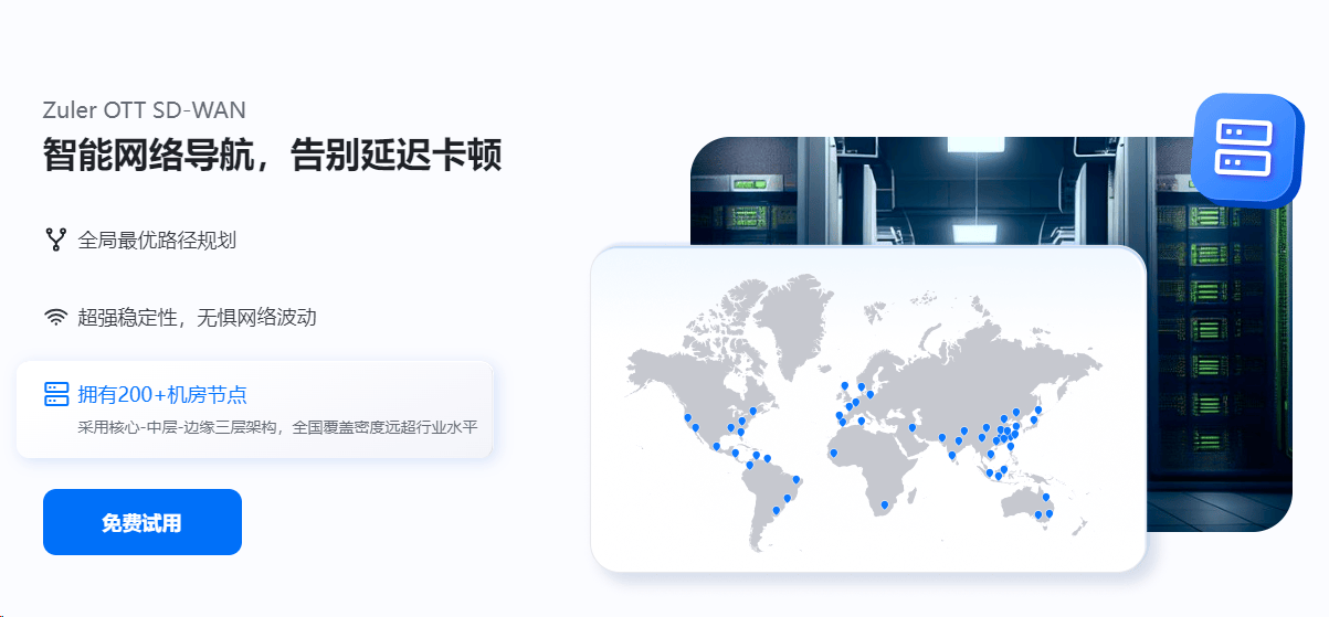 OTT SD-WAN技术则像是远程桌面的智能导航系统,它根据实时检测到的网络情况信息,进行全局计算,自动规划网络路径。这项技术帮助用户绕过不稳定的网络路线,选出最佳接入节点和转发路线。
