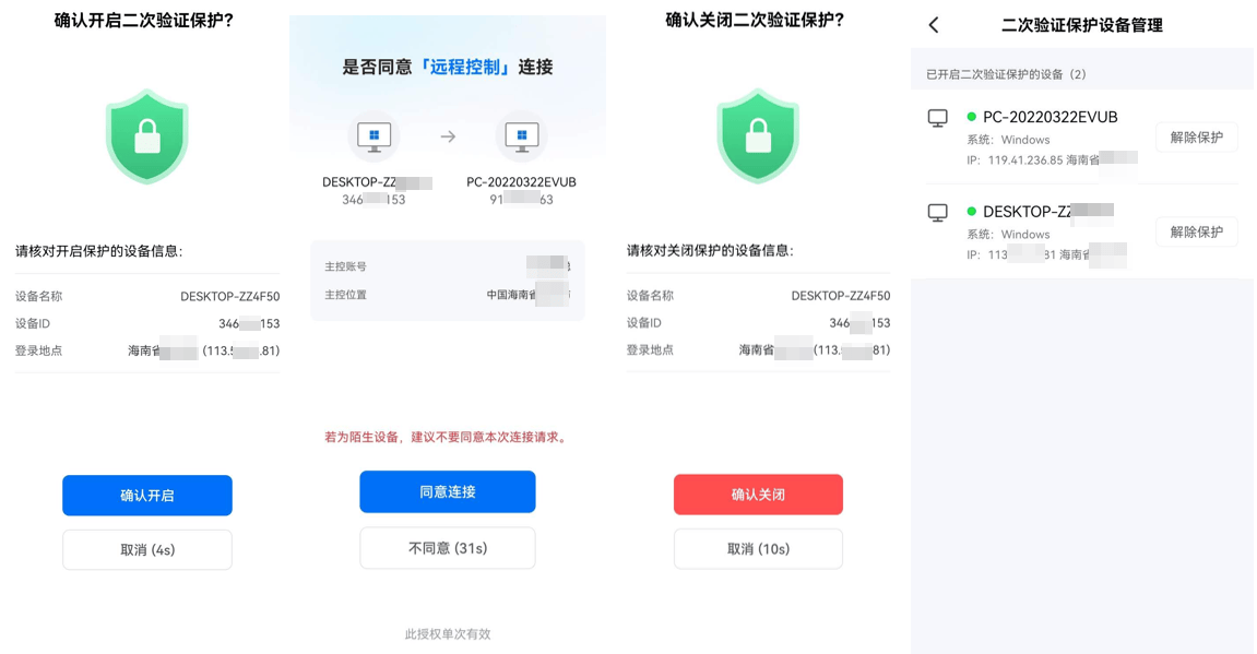 在优秀的性能和全面的功能之外,ToDesk安全方面也表现的非常出色。远控连接逻辑采用端到端加密双码连接,信息有且只有使用者本人知悉,任何人无法从传输过程中截取,从源头进行远控安全保护。