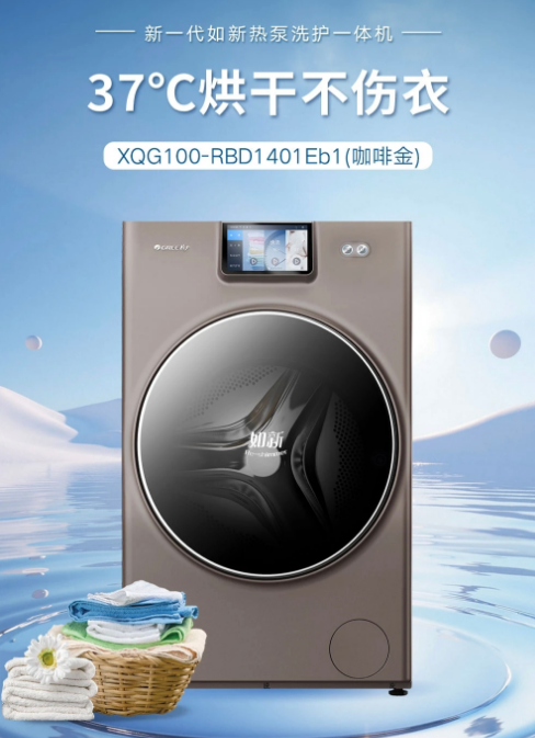 在这场产业变革中,格力凭借空调领域的技术积累,推动洗衣机行业价值重塑。格力近年推出的如初、如新、如悦系列热泵洗护机,突破传统烘干技术瓶颈,以“37℃体感柔烘”重新定义衣物烘干标准,开辟高端洗护新领域。