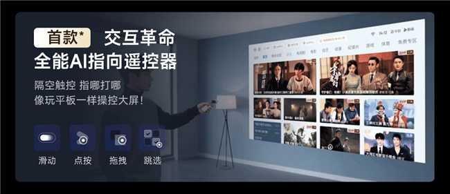 「指哪打哪」的遥控器,告别按键折磨痛点: 用传统遥控器在投影大屏上选片,效率极低。