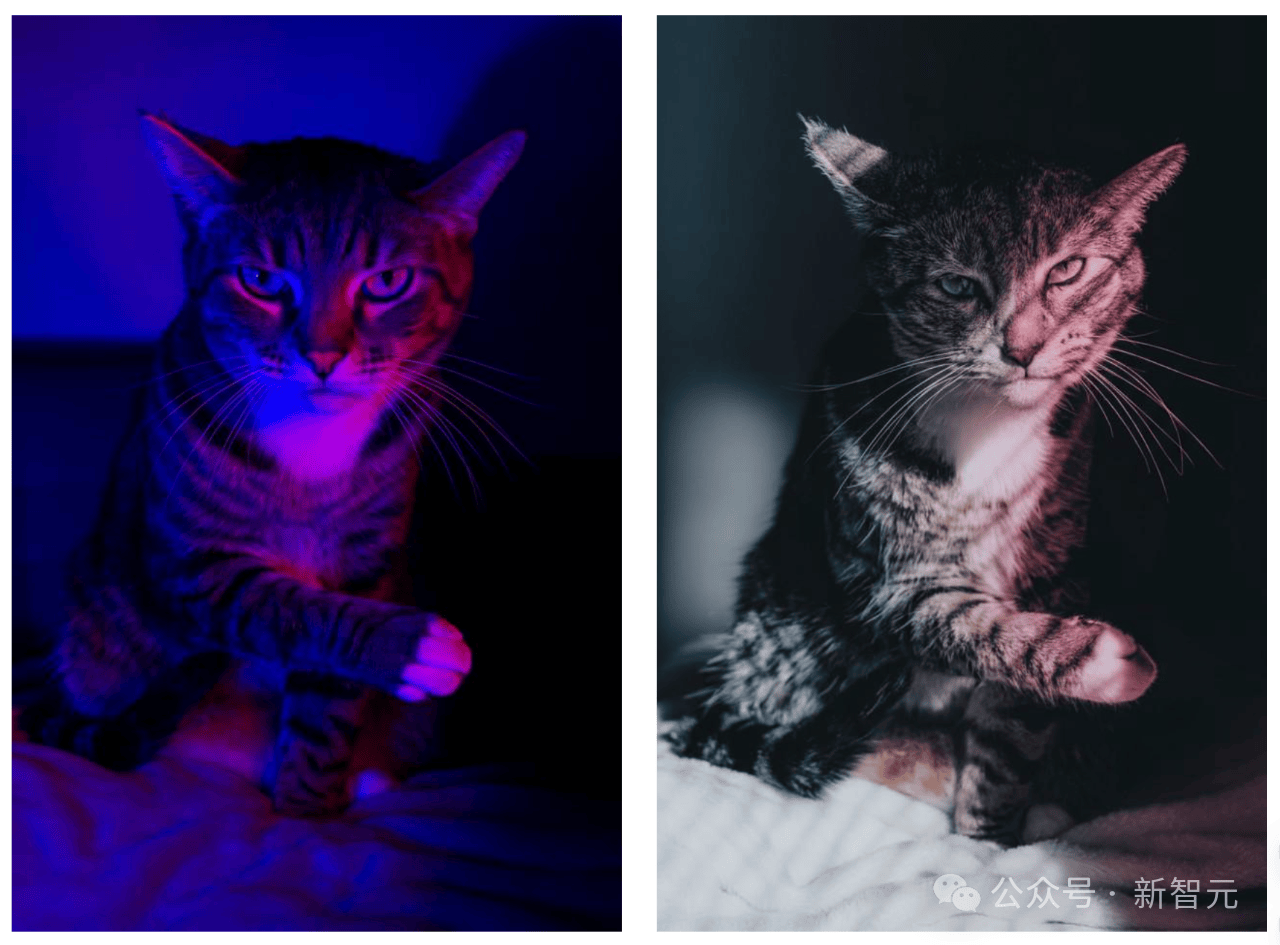 没想到,DreamOmni2不仅保持了图1原有的像格栅一样的光照,融合之后的红蓝对比也十分强烈。