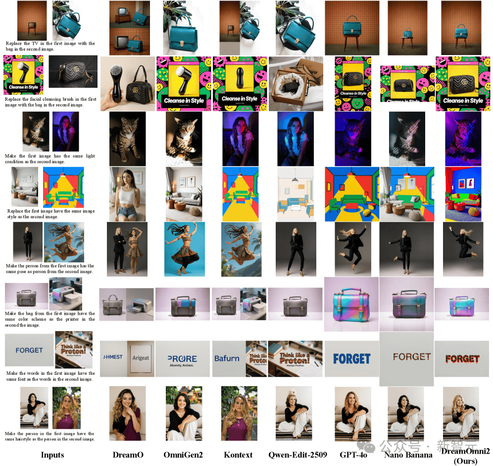 值得一提的是,DreamOmni2的多图编辑能力非常强。