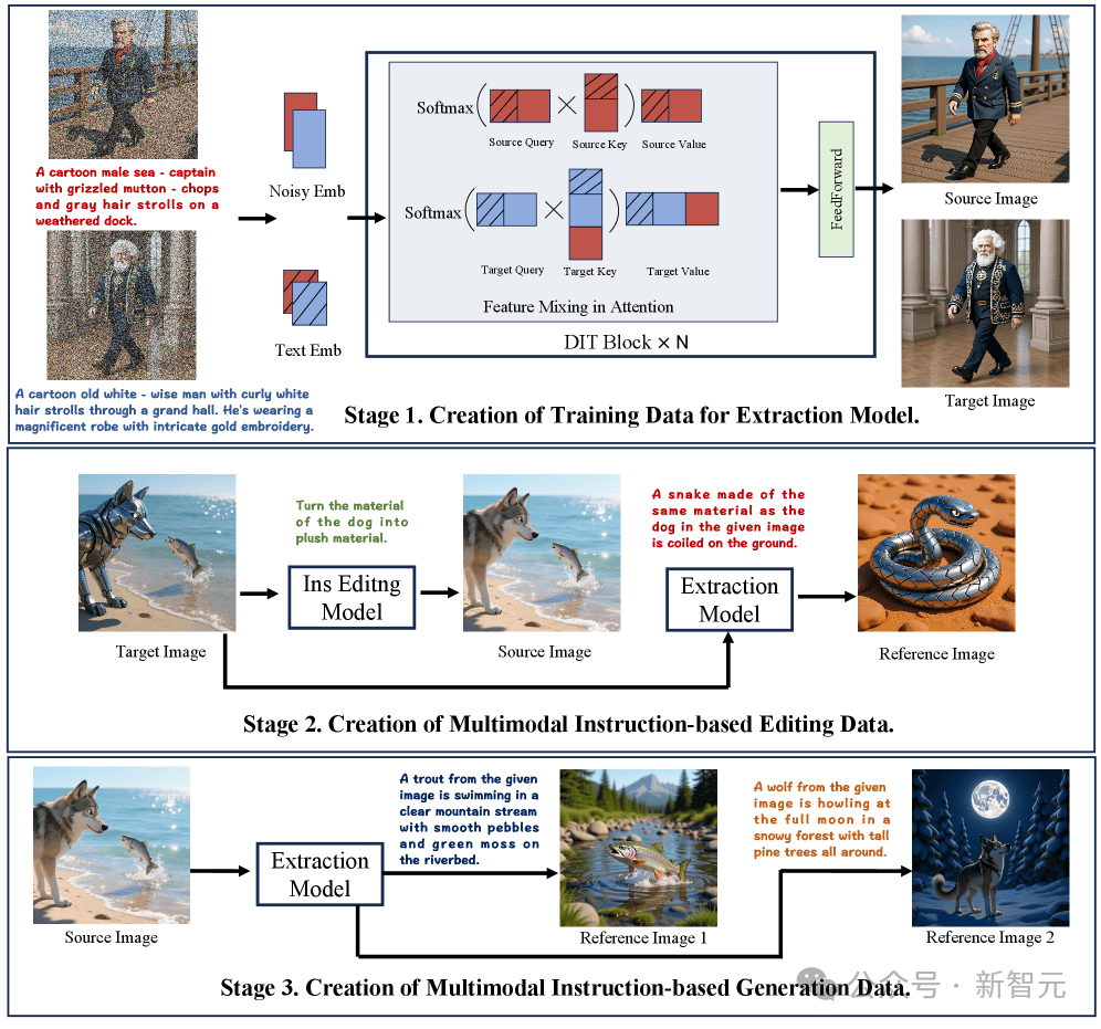 利用第一阶段的数据,团队首先训练了一个「提取模型」。这个模型能从一张图像中精准「提取」出某个物体或某种抽象属性,并根据指令生成一张新的参考图。