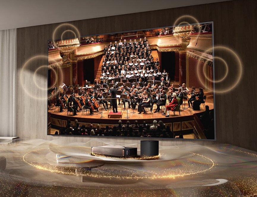 如何打造家庭影院的沉浸感?除了画质效果,还在于音效体验上。星光S1系列中这两款产品同样配备2.1.2音响系统。其中星光S1纯享版音响经帝瓦雷联合调校,低音爆发力强劲,战斗场景中的武器碰撞音清脆有力,可谓沉浸感十足。而海信星光S1 Pro则是内置哈曼卡顿音响系统,由左右主声道+天空声道+独立无线低音炮构成丰富的立体声场,当你观看维也纳新年音乐会时,各种乐器的层次感分明,仿佛亲临金色大厅现场一般。