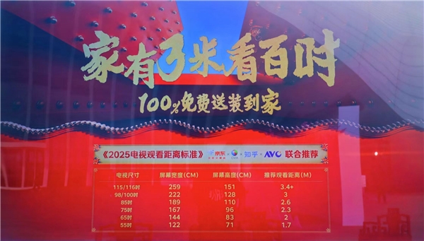 沙龙现场,京东联合中国电子视像行业协会、知乎、奥维一起发布了《2025电视观看距离标准》,为观看距离与电视尺寸的选择提供了更权威的推荐。董敏表示,希望通过该标准对电视消费提出详细的分级指导,解答消费者选购尺寸的疑惑,从而给大家更好的视听体验。