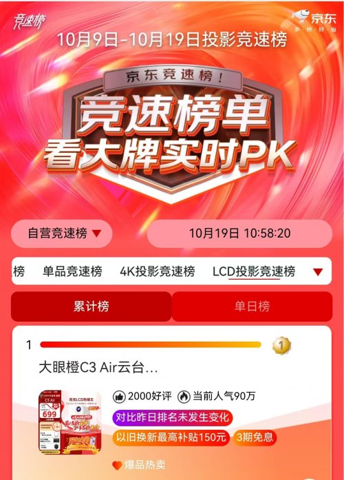 从消费者反馈来看,此次活动的信任构建与产品宣传成效显著。活动上线仅4天,大眼橙C3系列销量便实现环比大幅增长,其中大眼橙C3 Air凭借亲民价格与高配置,持续霸榜京东LCD投影类目销量榜首;在品牌官微的评论区,“官媒都报道了,果断下单”“C3 Air 用着不错,再冲一波抽奖”“终于有不玩套路的大促了”等留言刷屏,足见消费者对活动与产品的认可。