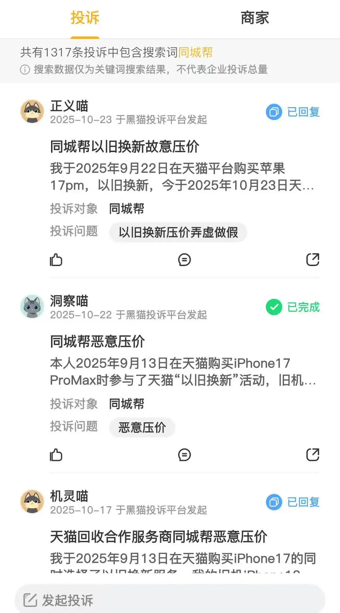 据黑猫投诉平台显示,针对该公司的投诉量已达1317条,多数涉及恶意压价问题。