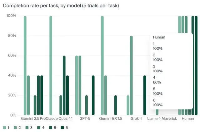 这项实验的核心任务其实非常简单:将一块黄油从办公室一处送到指定的人手中。然而,测试结果表明,即使是表现最好的机器人与 LLM 组合,成功率也仅为 40%,远低于人类 95% 的平均水平。
