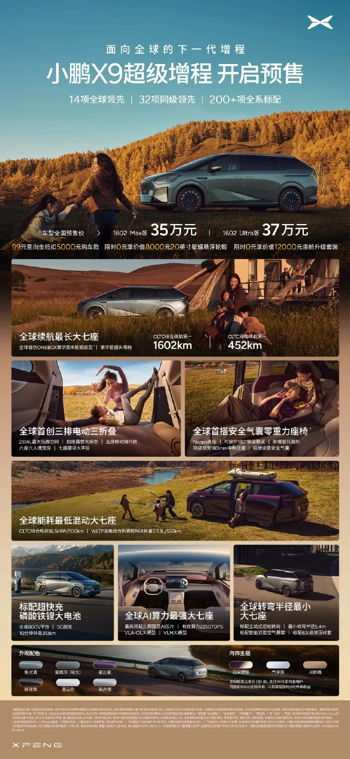 何小鹏还表示,小鹏X9超级増程预售成绩远超X9第一次上市的效果。从自己在中国和德国试驾的情况看,完全感觉是一台电车在开,已经实现了全球总计约2000万公里的总路试。