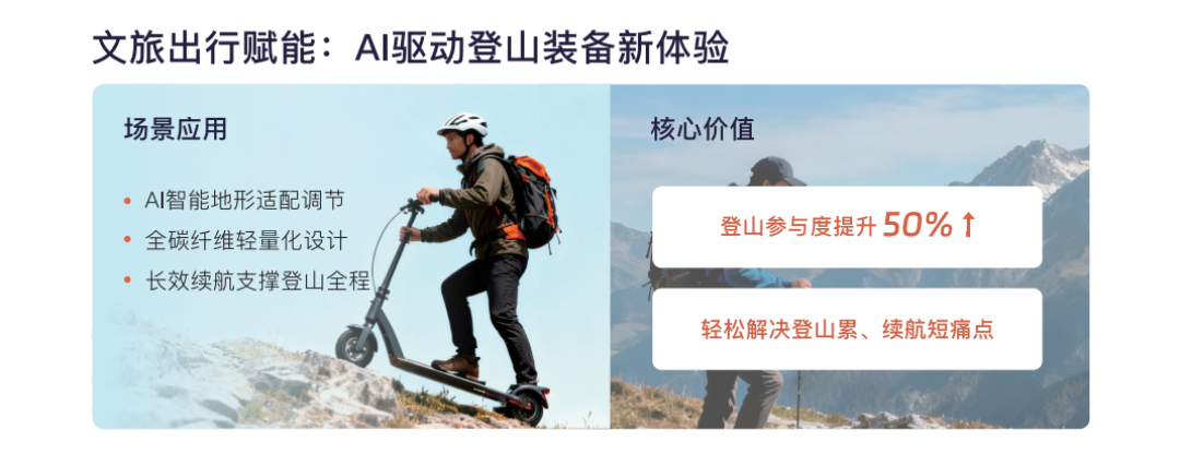 登山不再是年轻人的专属运动,AI在文旅装备中的创新,正在打破年龄与体能的限制,让户外出行场景焕发新活力。