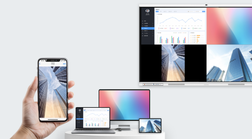 在会议室、培训室的本地协作里,多端一键投屏+50点红外触控*,助力项目评审、课程教学实现 “零延迟” 互动,想法实时碰撞。
