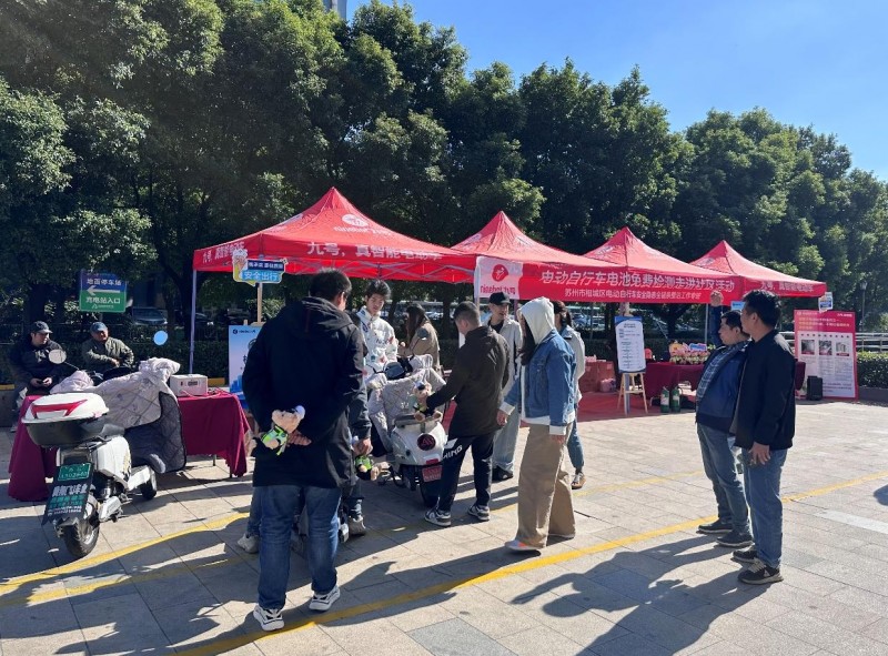 11月13日,在江苏省苏州市相城区的中翔·时尚广场上,由苏州市相城区电动自行车安全隐患全链条整治工作专班主办、九号公司提供技术支持的“安全‘锂’应知,平安伴你行”——苏州市电动自行车锂电池健康评估公益宣传日活动成功举办。此次活动旨在响应《江苏省电动自行车锂离子电池健康评估及报废回收专项行动工作方案》以及《电动自行车用锂离子电池健康评估工作指引》,加强市民对废旧、隐患电池的识别与处置意识,共同维护公共安全。