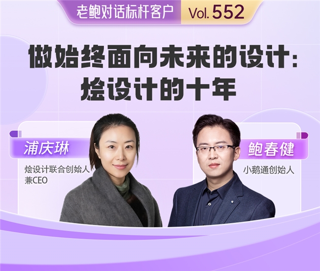 近日,小鹅通创始人鲍春健发起的《老鲍对话标杆客户》栏目特邀烩设计联合创始人浦庆琳,围绕”设计无界:工科思维与东方美学的长期实践”展开对话,分享其从央企跨界到设计平台创业的历程,以及小鹅通如何通过工具赋能助力其实现稳健发展。