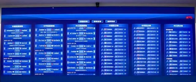 副屏同步展示三级联赛完整赛程,搭建赛事宏观视角。