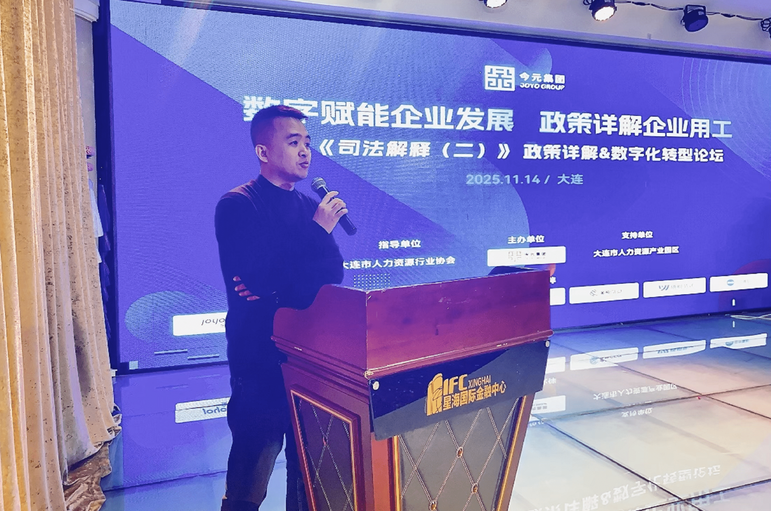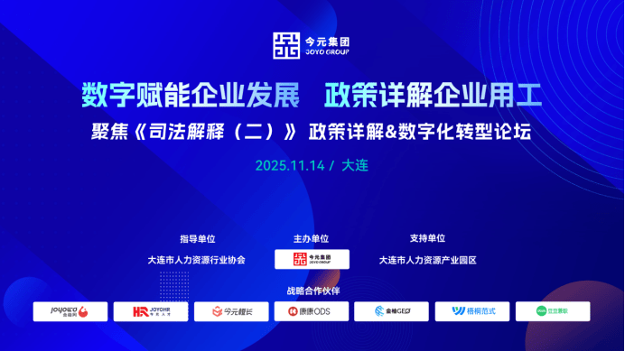 2025年11月14日,由大连市人力资源行业协会指导,今元集团主办,大连市人力资源产业园区支持,金柚网、今元人才、今元橙长、康康ODS、金柚GEO、梧桐范式、豆豆兼职作为战略合作伙伴的“数字赋能企业发展政策详解企业用工——聚焦《司法解释(二)》政策详解&数字化转型论坛”在大连成功举行。论坛汇聚人力资源领域实战派专家、法律界权威人士及企业管理者代表,围绕政策落地、合规风控、数字化转型等核心议题展开深度对话,为新时代企业人力管理破局提供了兼具理论高度与实践价值的解决方案。