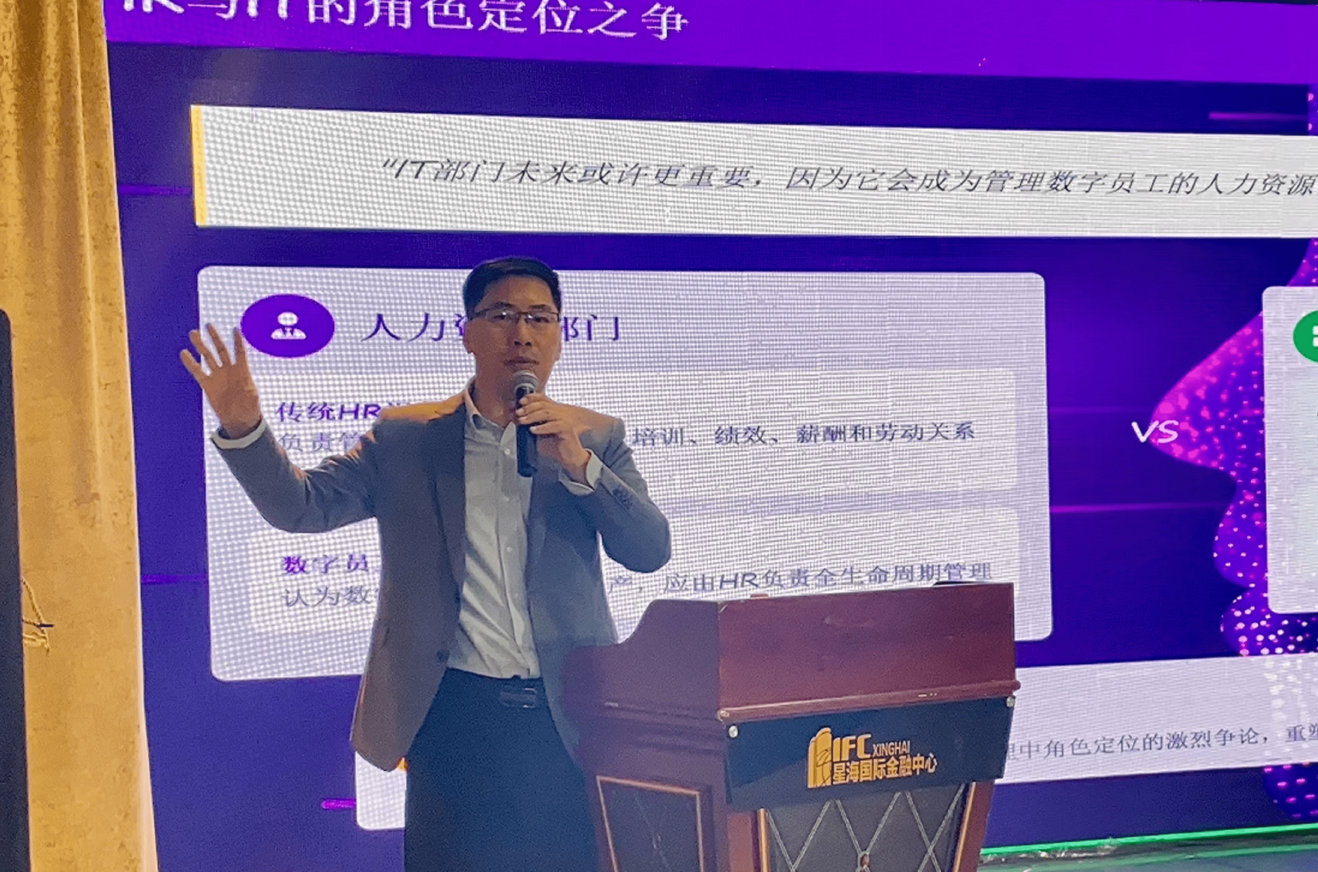 大连市人力资源产业园区副总、乘云万相(大连)信息科技有限公司总经理石中华以《“数字员工”崛起:HR是旁观者还是“新劳动力架构师”》为主题,带来关于人力资源数字化转型的前沿思考。他指出,随着AI、RPA等技术的成熟应用,“数字员工”已从概念走向实际落地,在简历筛选、薪酬核算、社保公积金缴纳等重复性工作中发挥着重要作用,推动人力资源管理从“事务型”向“战略型”转型。石中华强调,数字化转型并非简单的技术替代,而是对组织劳动力架构的重构——HR部门不应被动适应技术变革,而应主动转型为“新劳动力架构师”,通过规划人机协同模式、优化人才结构、搭建数字化管理体系,为企业创造更大价值。这一前瞻性观点引发了现场嘉宾的深度共鸣与热烈讨论,将论坛氛围推向高潮。