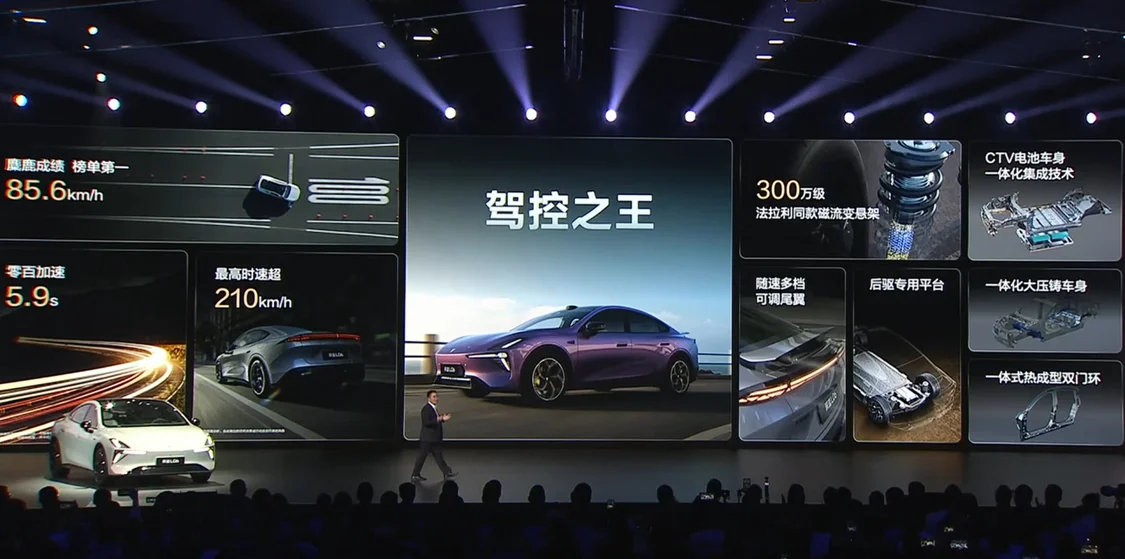 “磁流变真正意义上,它跟传统原理完全不一样,”彭钱磊解释道,“实际上就像水跟冰晶可以无缝切换,大家看过一部电影叫《毒液》,或者现在网上有一个很流行的词是叫‘非牛顿流体’,看上去很软,但是你使劲砸它的时候,它又很硬。”他将其体验价值总结为四句话:“飞坡不跳”、“过弯不偏”、“刹车不点头”、“起步不抬头”,并形象地称之为“公路磁悬浮”。