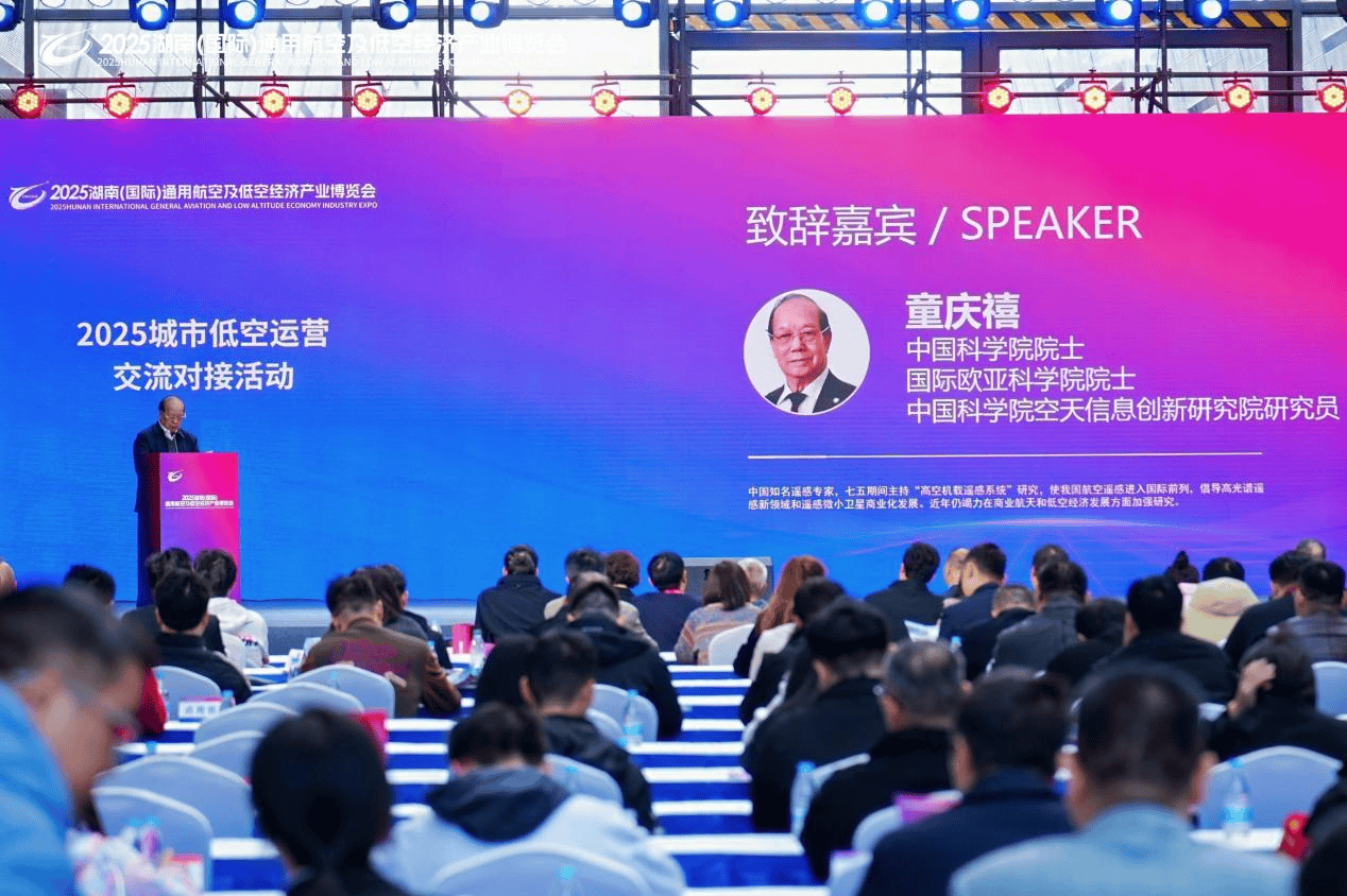 本次交流活动由湖南省低空经济协会理事、副会长,湖南省无人机行业战略发展研究院院长,智航飞购董事长戴旺担任主持人。中国科学院院士童庆禧在活动致辞中指出,低空,已成为未来城市发展的新空间、新引擎。我们应以历史的责任感、科学的严谨性,共同推动这一新兴产业迈向更高质量、更具韧性的未来。法国欧洲科学院院士、俄罗斯自然科学院院士、世界无人机大会主席杨金才也亲临现场并发表演讲。高规格的活动主题,吸引了超过500位各界参与者到场,座无虚席,这也成为本届博览会期间人气最高的专业论坛活动之一。