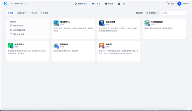 应用层:提供 60 余个场景化应用模板,覆盖智能客服、数据分析、培训数字人、流程自动化等全场景。模板基于行业最佳实践开发,企业可直接复用或快速定制,实现 “开箱即用”,大幅缩短 AI 应用从开发到落地的周期。