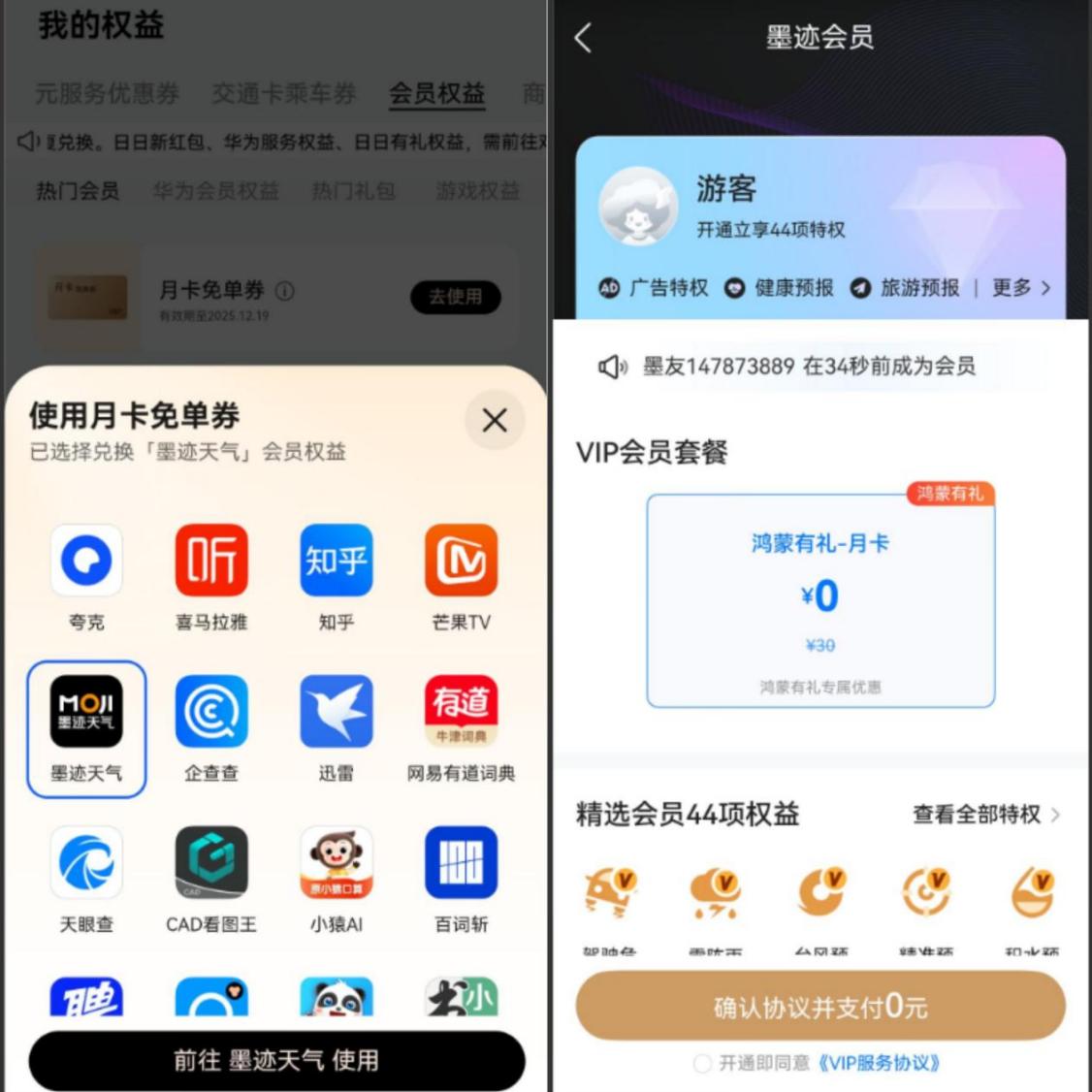 自10月22日HarmonyOS 6发布以来,鸿蒙生态加速前进,推动着应用从“基础适配”迈向与系统的“深度融合”,体验从“可用”迈向“好用”。墨迹天气作为首批适配的气象服务应用,持续跟进系统迭代并完成更新。配合此次系统升级,华为同步推出了“鸿蒙有礼”活动,用户参与签到即可免费领取墨迹天气会员月卡,体验其会员专属功能。