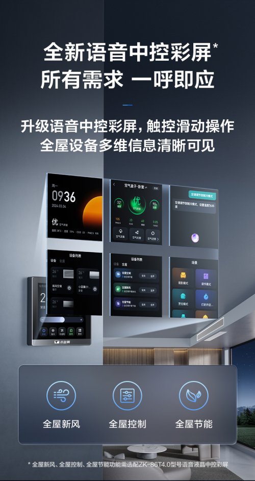 小蓝翼P7新风风管机全新升级语音中控彩屏,多场景交互一呼即应