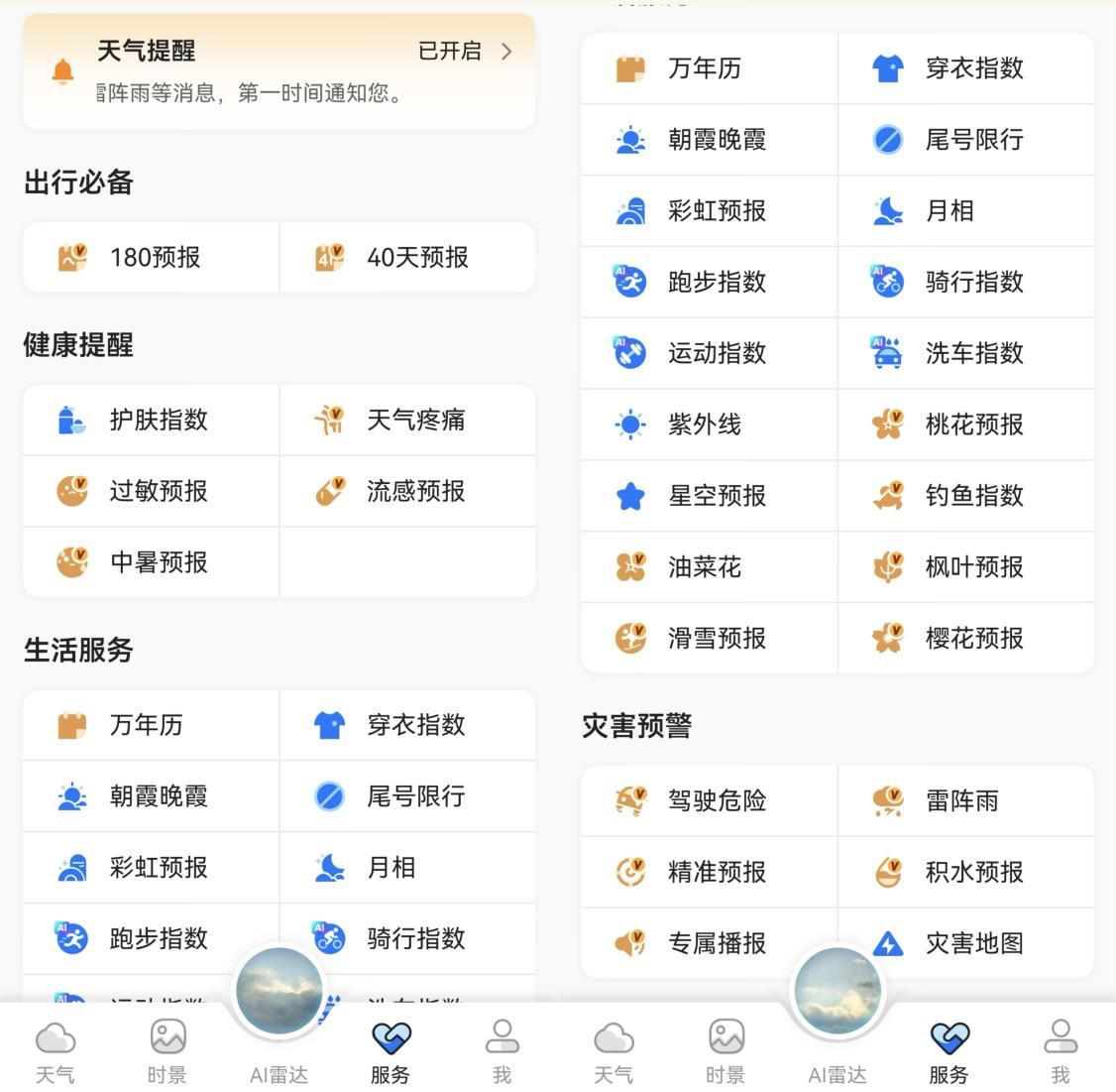 此外,鸿蒙版会员权益涵盖出行必备、健康提醒、生活服务、灾害预警等板块。其中,40天超长期预报结合自研AI算法,以直观的日历呈现中长期天气趋势,清晰标注湿冷天气的持续周期、降温峰值时段等关键信息,为行程规划提供科学依据。滑雪预报可查询全国 26 个省份的近 400 家室外滑雪场详细信息,提供雪质、推荐指数及5日趋势预报,帮助滑雪爱好者选择理想的滑雪时间和地点。