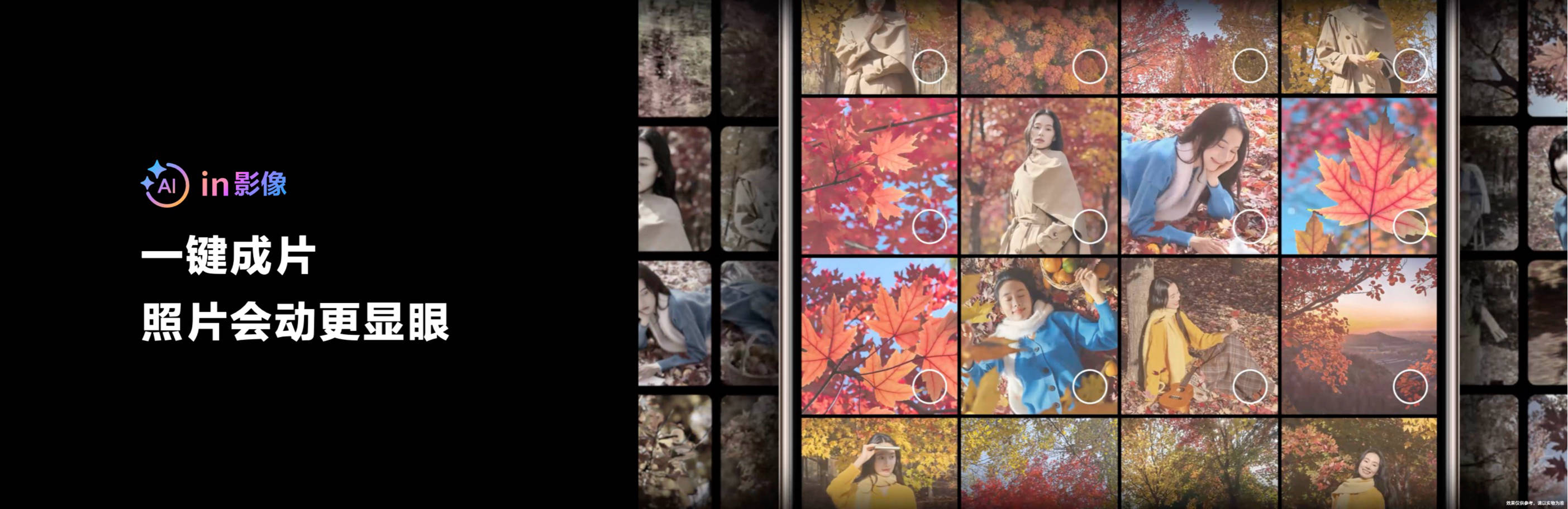 借助AI一键成片功能,系统可自动为用户选中的照片智能匹配视频模板,生成专业自然的运镜效果,选择灵动效果能让静态照片轻松“动起来”。同时,AI能自动识别视频中的关键瞬间,帮助非专业用户随手拍,一键生成质感大片,使回忆也变得更加鲜活。