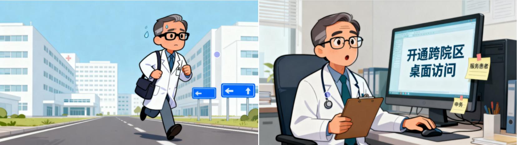 信息科意识到,实现安全、便捷的互联网移动办公,支持跨院区桌面的灵活访问,已成为提升医护人员工作效率的关键所在。这不仅有助于优化诊疗流程、更好地服务患者,也是医院迈向智慧诊疗的重要一步。