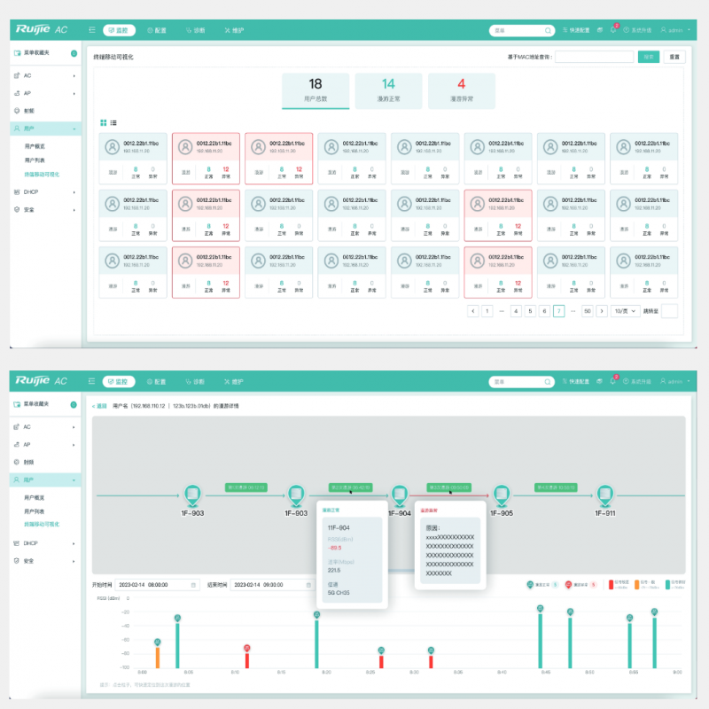 网络的持续“保鲜”,离不开智能高效的运维系统。惠诚食品部署的UNC AS 运维管理平台支持光网络的可视化智能管理,运维人员可以对全网的光链路及有线设备进行统一监控。同时,方案还支持在AC Web对终端漫游轨迹回放和天馈线状态实时监测,简化故障排查流程。运维效率的提升,可以让两位运维人员有更多精力投入到新园区的网络规划与建设中。