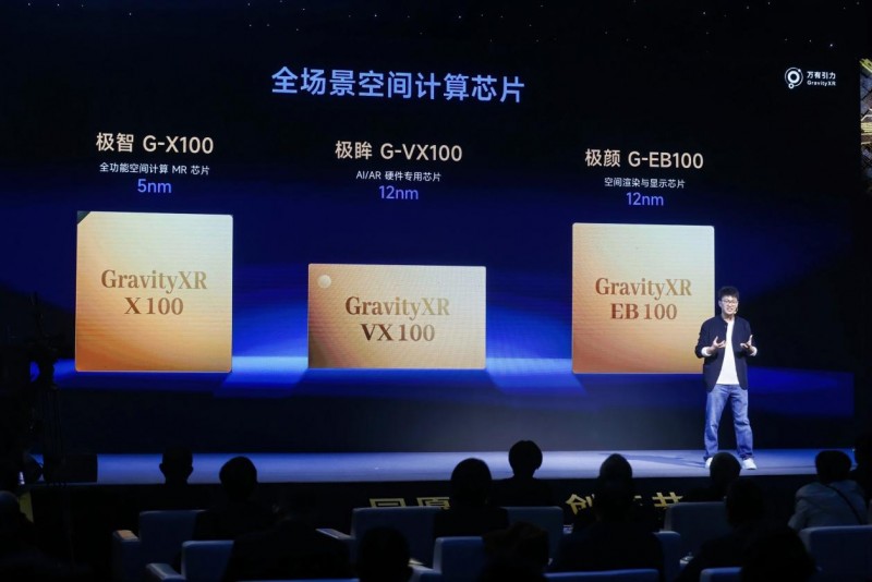 这些神奇的场景和炫酷的极致体验,都需要源于最底层的芯片支持。在近日举行的“2025空间计算大会”大会上,万有引力电子科技正式发布极智G-X100、极眸G-VX100、极颜G-EB100三款自主研发的空间计算芯片。其中,旗舰产品极智G-X100作为我国首款全功能空间计算MR芯片,标志着我国在下一代计算平台领域实现重要技术突破。万有引力电子科技创始人兼CEO王超昊博士在主题演讲中指出:“空间计算将物理世界数字化,打破 2D世界的边界,将所有的交互内容融入到 3D 世界中,我们致力于为世界装上‘操作系统’。”