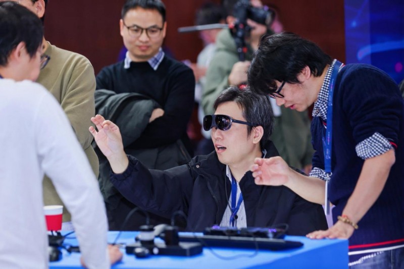 在大会现场,万有引力电子科技创始人兼CEO王超昊博士展示了一款业界前所未有的MR眼镜参考样机——它搭载着“极智G-X100”芯片,重量不到100克,既有90度的虚拟场景视场角,又支持自然的手眼交互,以酷似墨镜的形态,降低用户拥抱MR的门槛。