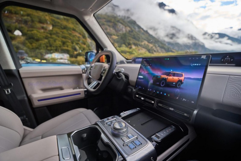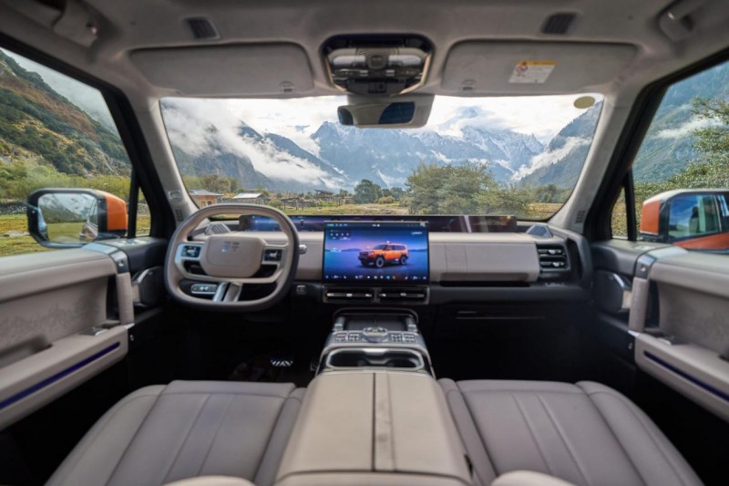 内饰上,纵横G700以东方美学为底蕴、自然史诗为灵感,深度融合喜马拉雅山脉的壮阔意象,将珠峰8848米等高线肌理、珠峰图腾徽章等设计元素匠心呈现,勾勒出“刚柔相济的和谐之美”。 车内触手可及之处,均采用360°环绕式柔质包覆,压印真皮仪表台与高级麂皮顶棚相得益彰,在极致触感与实用功能间取得精妙平衡。相较于坦克500的国潮风尚与方程豹豹8的未来科幻座舱各有千秋,而在材质甄选的高端化与设计创新的独特性上,纵横G700已然形成绝对优势,彰显豪华越野的高阶格调。