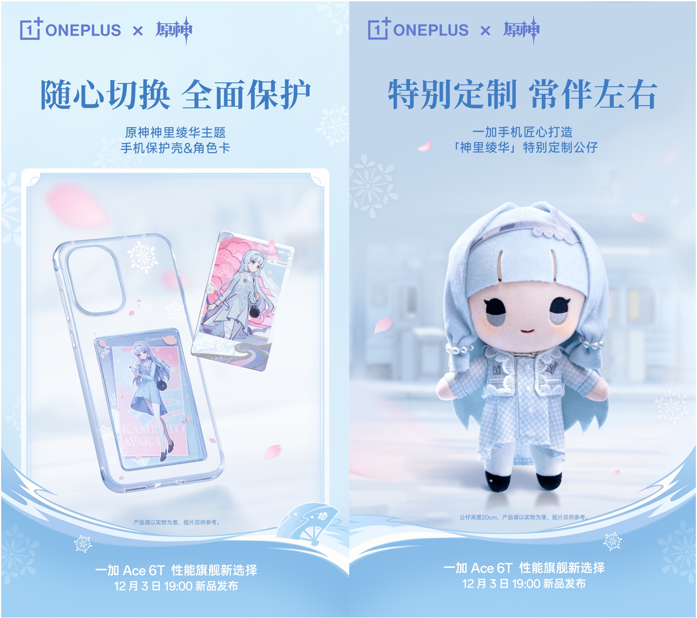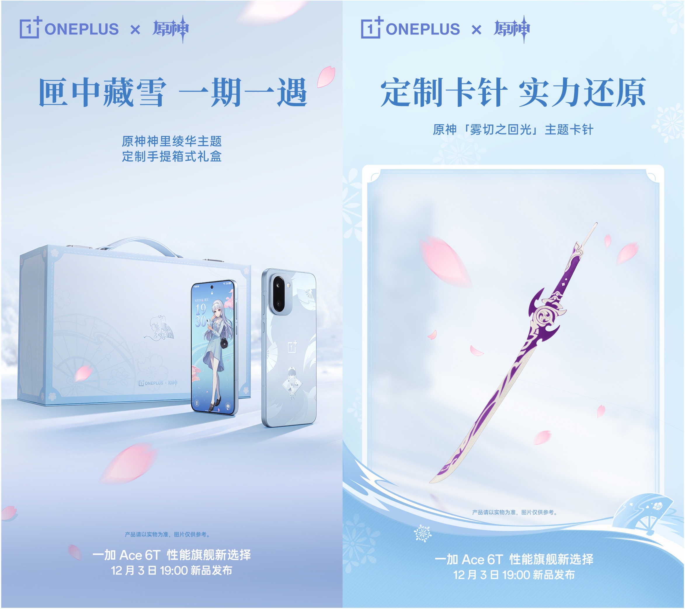 2025年12月2日,一加 Ace 6T原神神里绫华定制机正式官宣,将于12月3日发布。全新原神定制机以超高人气角色「白鹭公主」神里绫华为灵感,将人物神韵、服饰与故事凝练为统一的美学符号,深度贯穿于产品外观设计、系统主题及全套周边之中,为原神爱好者们带来深度定制的典藏级作品。
