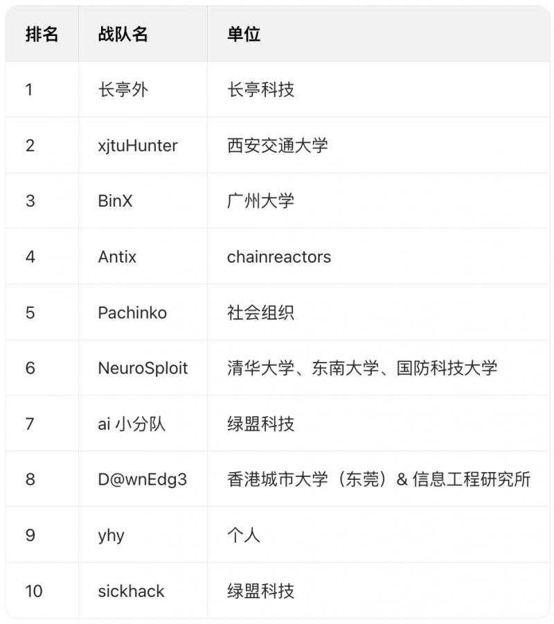 此前线上赛阶段决出的战队可谓“星光耀眼”。清华大学、复旦大学、帝国理工学院、卡内基梅隆大学等国内外知名高校学生战队,鹏城实验室、中国科学院信息工程研究所等权威科研机构的专家战队以及阿里、京东、长亭等行业领军企业战队,代表了当前行业中的最强实力。