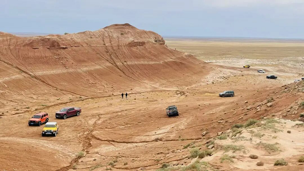 在草原穿越时,头车与尾车常拉开3~5公里距离。科队说:“对讲机、手机没信号是常态。有次新手走错岔路,全靠四维地球探索版的轨迹,顺着轨迹自己绕回了主路。”