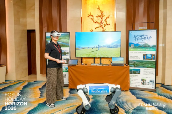 11月28日,在三亚举行的复星旅文产品观2026发布会上,当虹科技与复星旅文共同呈现了一场“山海相逢”的沉浸式AI文旅体验。依托BlackEye Vision机器人超远距离远程遥操系统,身处三亚的体验者戴上VR眼镜,便能实时操控远在丽江的机器狗——转身、前行、止步、环顾四周,并实时传回清晰画面。