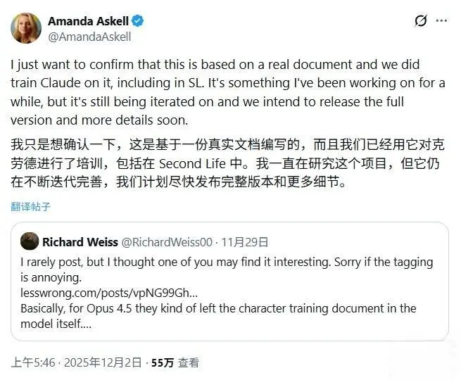 Anthropic 公司的伦理学家 Amanda Askell 随后在社交媒体 X 上证实了该文件的真实性,并表示泄露版较为准确地还原原始文件。