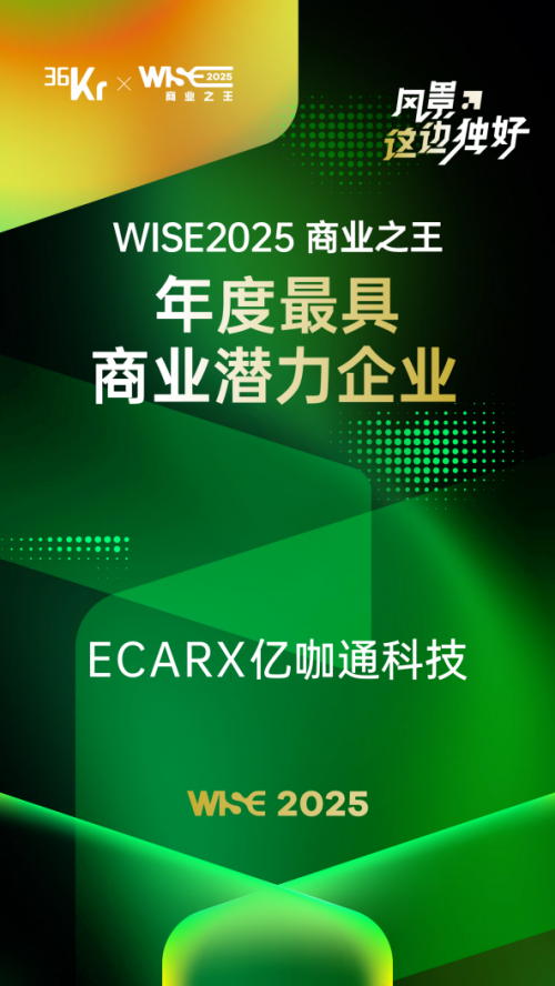 WISE商业之王大会已连续举办十三届,是国内最具影响力的年度商业峰会之一,被誉为“未来商业趋势风向标”。本届WISE2025大会以“风景这边独好”为主题,聚焦人工智能、品牌出海、先进制造等多个热门赛道,评选并表彰具有全球视野、创新力和前瞻性思维的公司。ECARX从发展初期即得到36氪的长期关注,多年获评WISE商业之王榜单荣誉,今年凭借企业在行业复杂环境中保持韧性向前,成功实现盈利,展现出在市值成长上的巨大潜力而获此称号。