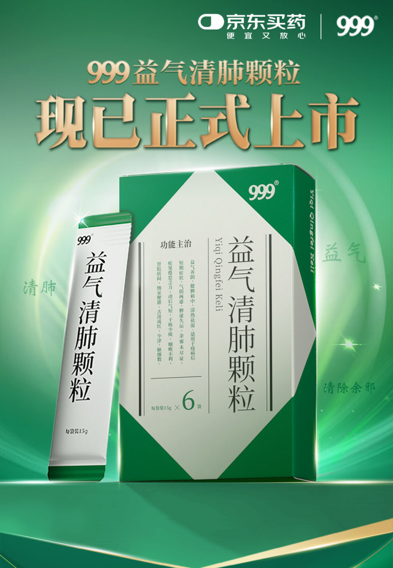 为了满足消费者应对呼吸道感染康复期综合症状的临床需求,张伯礼院士以经典名方“生脉散”与“平胃散”为基础,融合一线康复诊疗经验拟定清金益气方,在多家医院作为院内制剂投入使用。其后,为了让消费者在呼吸道感染康复期便捷用药,张伯礼院士及团队联合华润三九将新药组方开发为规模化生产的颗粒剂——999益气清肺颗粒。对于该药的适应症,张伯礼院士指出:“999益气清肺颗粒对甲流、乙流,对呼吸道感染,特别是重症的感染,退热后引起的不适都有效。”