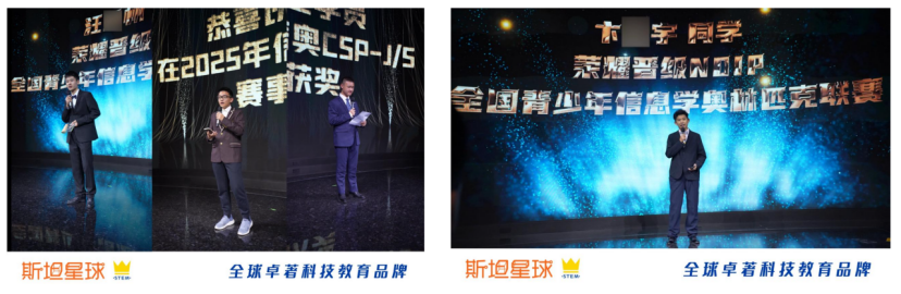 活动伊始,2025年CSP-J/S认证荣誉颁奖典礼率先拉开帷幕,NOI全国信息学奥赛上海特派员、CCF-GESP编程认证上海特派员吴申广老师受邀为获奖学员颁奖,见证斯坦星球青少年信奥学子的荣耀时刻。