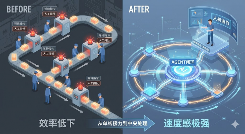 问题在于,许多企业仍让Agent按“人工逻辑”工作,这就导致Agent有能力,却无权限;有潜力,却无空间。造成的不是AI能力不足,而是组织结构把它束缚在低效模式中。