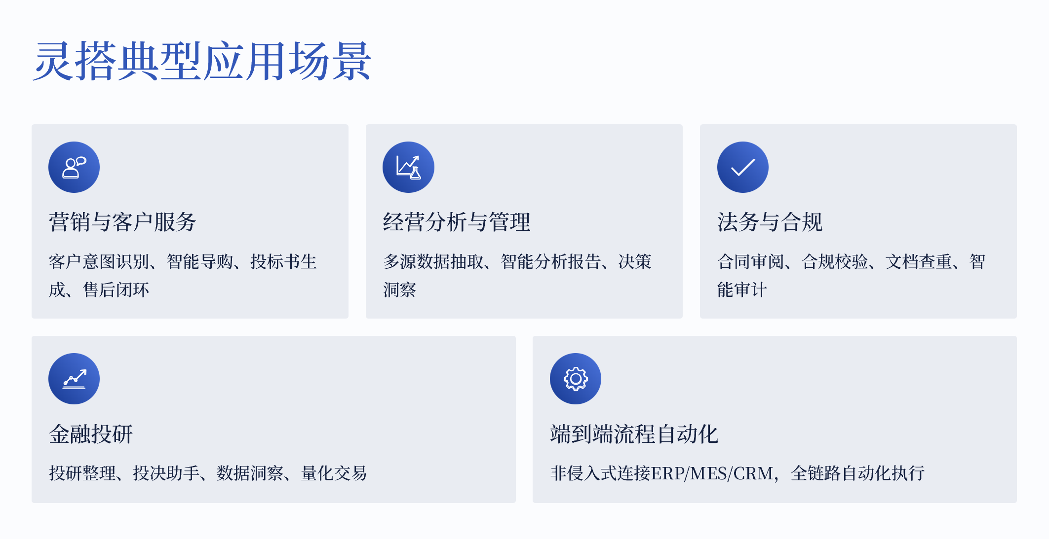 作为国内首个企业级智能体平台“灵搭”的开发者,未来式智能精准把握行业技术演进趋势,更直击企业智能应用的核心痛点——技术门槛高、业务人员难以自主使用。为此,“灵搭”平台以“赋能业务人员”为核心设计理念,突破了传统智能体“需技术人员主导”的局限。其核心技术路线Text2Agent实现了从自然语言到任务执行链的自动生成,企业业务人员无需掌握任何代码知识,只需用日常业务语言描述需求,就能驱动复杂流程运转;类人操作技术则攻克了跨系统自动化的核心难题,让业务人员无需熟悉系统底层逻辑,就能像操作日常办公软件一样,让智能体熟练处理ERP、MES、CRM等企业系统的跨平台操作。
