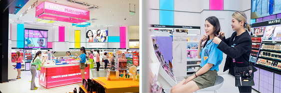 屈臣氏在位于上海陆家嘴CBD的世纪汇广场门店推出“潮玩妆造区”,提供一站式变美造型服务