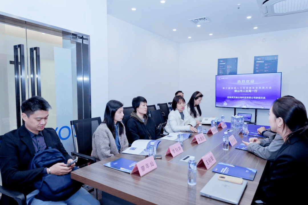 2025年11月27日,第三届全国人力资源服务业发展大会(简称“服发会”)前夕,佛山市人力资源和社会保障局党组成员、副局长梁显凤率队莅临今元集团旗下金柚GEO(武汉柚出海科技有限公司)开展调研交流。佛山市人社局就业创业促进科科长罗昭霞,佛山市禅城区人社局人力资源服务股股长潘婷婷,广东佛山人力资源服务产业园运营有限公司总经理廖年灿,佛山南海人力资源服务产业园运营总监甘庚等随行调研。今元集团助理总裁裘东萍、集团保障中心副总裁马莉,集团旗下金柚GEO首席执行官(CEO)徐铁诚、首席运营官(COO)肖键等热情接待了调研团,双方就服务企业出海的人力资源模式创新、推动本土产业与人力服务深度融合等核心议题展开深入探讨。